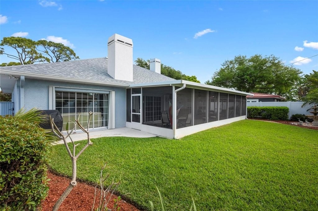 Enjoy Island living in this distinctive and different renovated, spacious three-bedroom home four blocks to the beach. From the moment you drive up and see the wonderful landscaped yard and great curb appeal, you will not be disappointed. The kitchen has an abundance of cabinets, granite counters, an Island, stainless appliances and pantry with pull out drawers. The breakfast bar opens to the great room area with a fireplace and sliding glass doors to the lanai. The owner's suite has fireplace for cozy evenings enhanced with a vaulted ceiling and wood flooring. The primary bath has dual sinks, granite counters and full shower. You will love entertaining in this spacious lanai which overlooks a nicely landscaped fenced yard with a beautiful fountain that is included. This solid house has full hurricane protection with some impact windows and panels for others. Features: roof replaced 2021, a/c 2 1/2 years, Instant tankless hot water heater 3 1/2 yrs and no carpet! Even the roof was raised to a hip roof to give it that modern look. Located in good flood zone X. Enjoy all the Island has to offer with beautiful beaches, quaint shops, restaurants and outside cafes, live theater, parks and more in this bike friendly town.